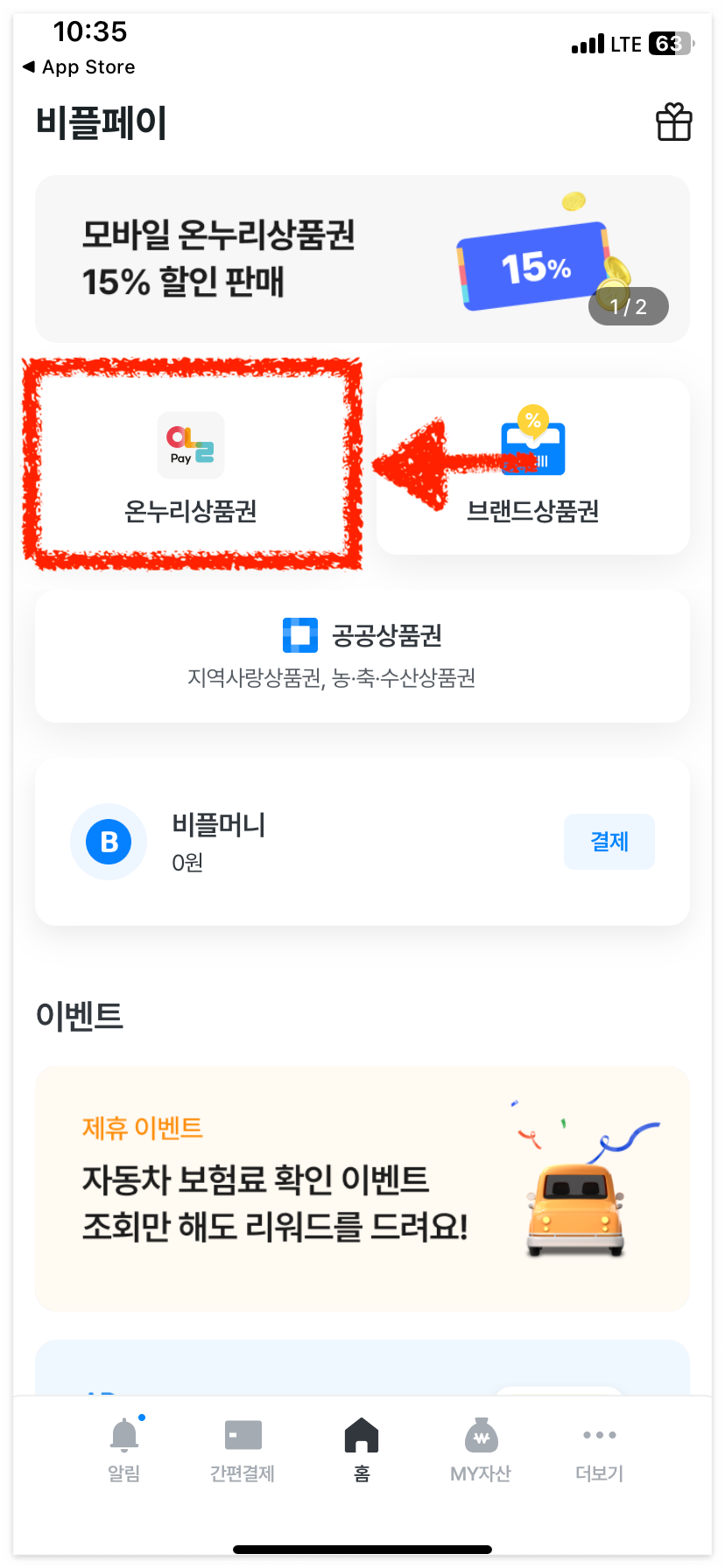 • 비플페이 홈화면에 [온누리상품권]을 클릭해 주세요.