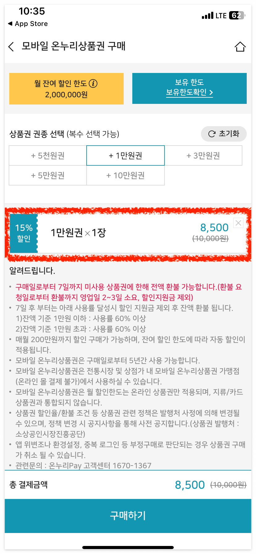 이제 온누리상품권을 15% 할인된 가격에 구매해 볼까요?